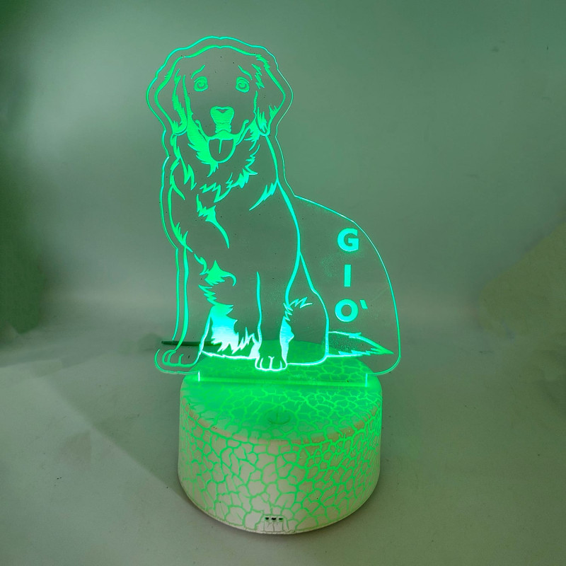 Lampada LED Personalizzata con Cane e Nome | Luce Notturna RGB Multicolore con Incisione Animale Domestico | Base Touch